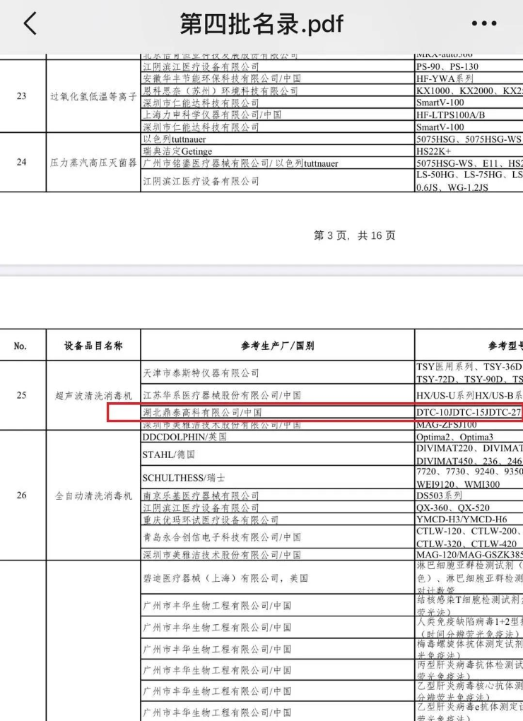 在接收到中國醫(yī)學(xué)裝備協(xié)會(huì)的通知后,鼎泰積極地做出了響應(yīng),第一時(shí)間就超聲波清洗消毒機(jī)設(shè)備品目進(jìn)行了申報(bào)。近幾天,鼎泰DTC系列全自動(dòng)超聲波清洗機(jī)入選《新冠肺炎疫情防治急需醫(yī)學(xué)裝備目錄》(第四批)